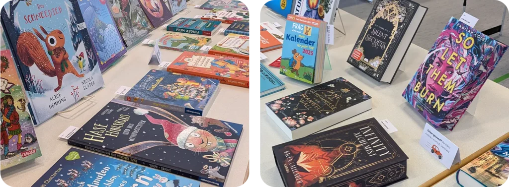 Wie immer haben wir eine große Auswahl an Büchern verschiedener Genres, die ihr direkt kaufen oder bei uns bestellen könnt. Mit jeder Bestellung unterstützt ihr unsere Bücherei. Ihr habt auch dieses Jahr die Chance ein Buch aus einem Genre eurer Wahl zu gewinnen, denn mit jedem Kauf nehmt ihr automatisch an unserem Gewinnspiel teil (Teilnahmebedingungen).